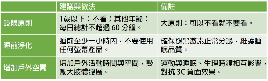 請各位爸媽和小兒科醫師一起努力,幫孩子把關螢幕使用時間,選擇高品質的數位內容,並從小培養孩子的媒體素養,讓我們的下一代能駕馭數位工具,而不是被其控制。